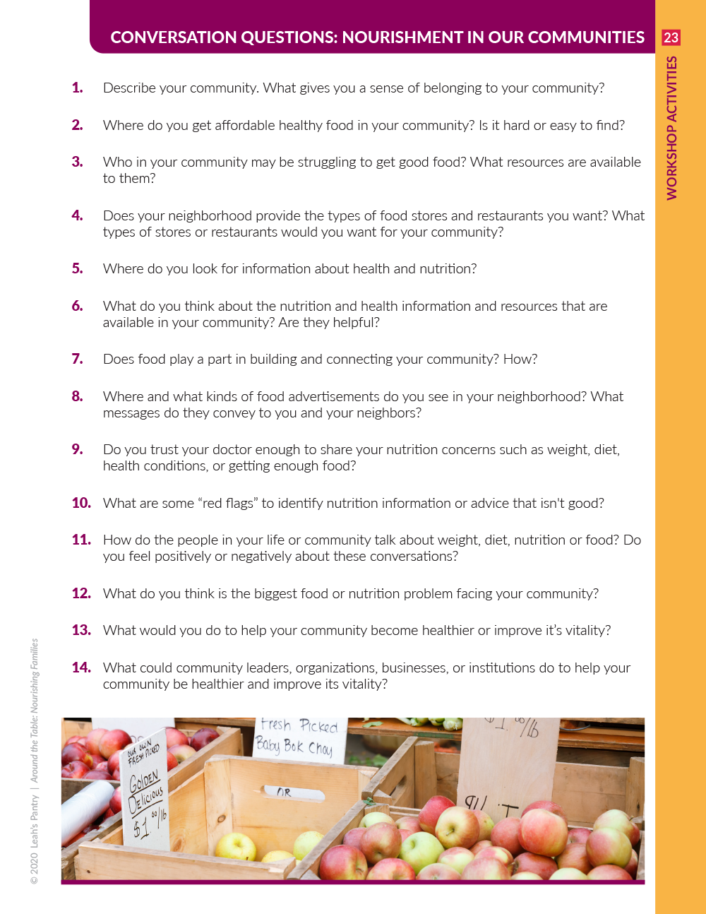 The caregiver workbook is part of the Around the Table: Nourishing Families curriculum. Each participant in an Around the Table: Nourishing Families workshop should have his or her own workbook.